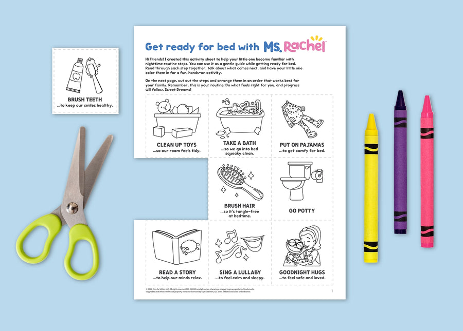 Bring calm and comfort to bedtime by roleplaying your bedtime routine with Ms. Rachel's friend, Frankie!