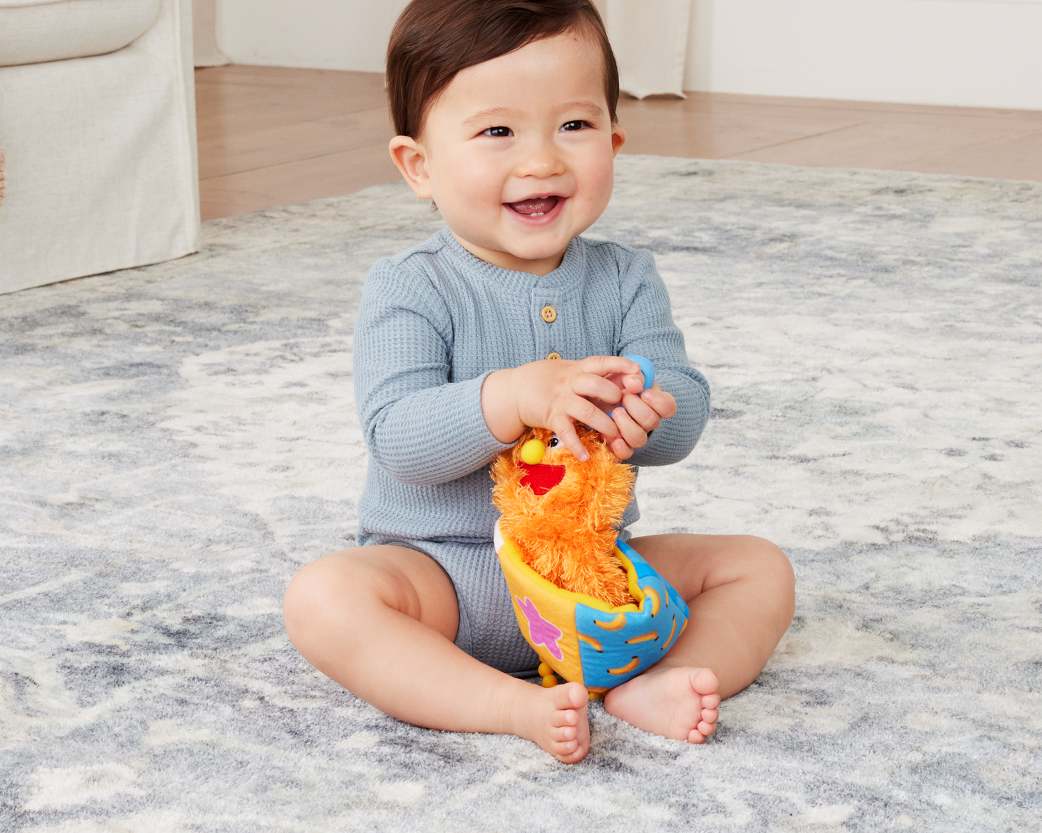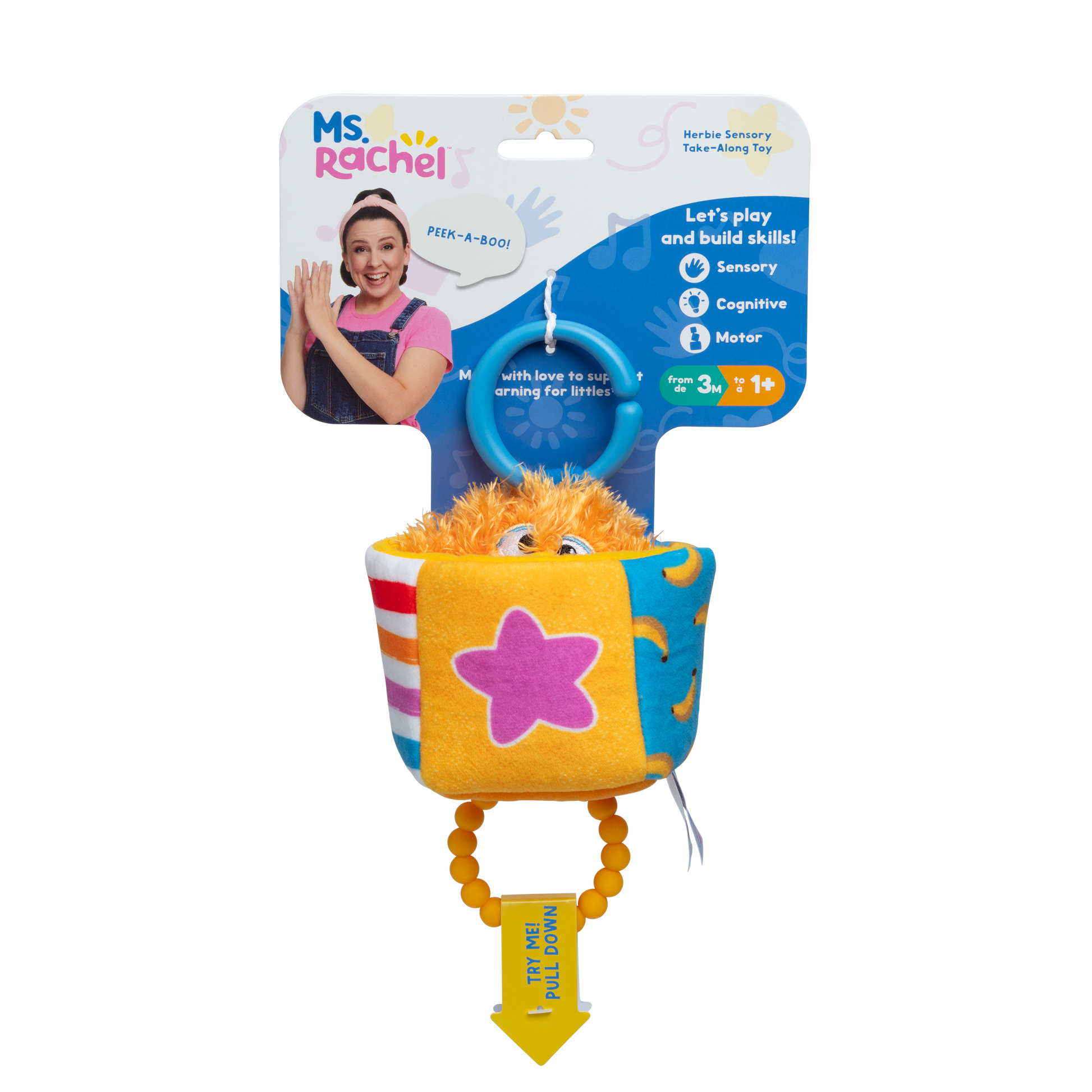 Take Ms. Rachel’s friend Herbie with you everywhere you go. Playtime becomes sensory play with a teething ring, jittering, and peek-a-boo movement.