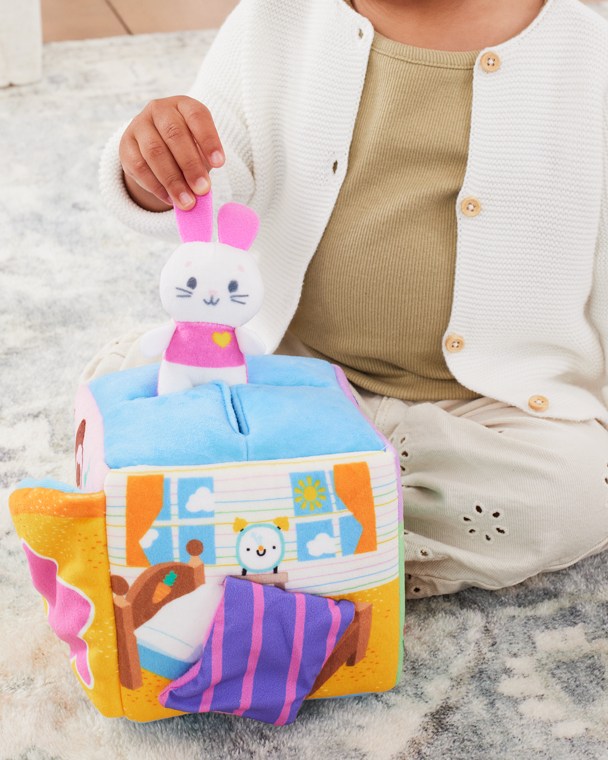 Lift the flap as babies enjoy the excitement of discovery play, pulling out surprises from the box and enhancing their grasp and fine motor skills by placing them in play environments.